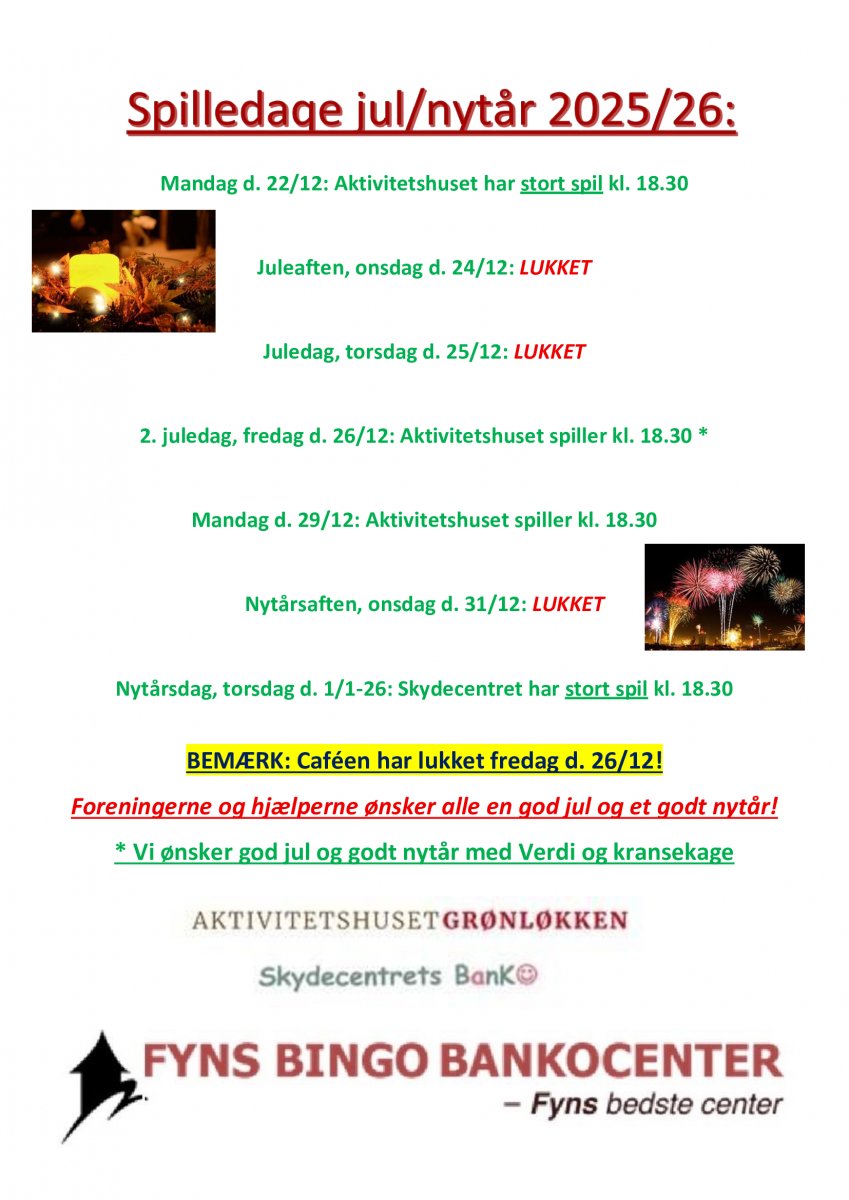Kom og vær med, når vi spiller bingo 90 og traditionel banko! Foruden vores forskellige spil har vi løbende hyggelige arrangementer bl.a. vores Tysklandsture, som vi tager på jævnligt. Hos os har vi alle faciliteter for både garvede spillere og nybegyndere. - Velkommen til.
